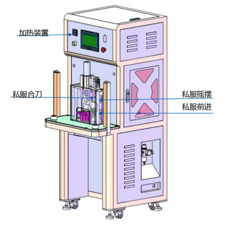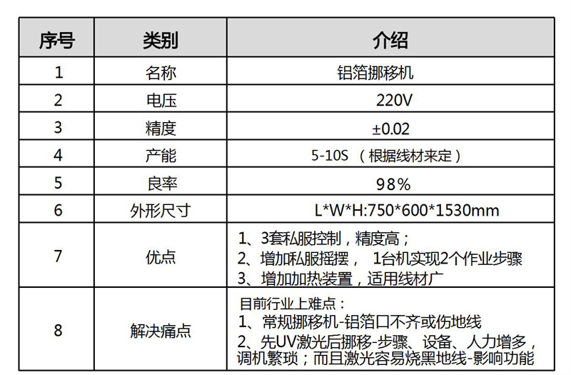 產(chǎn)品描述:人工放入排好線材的線夾,機器下壓治具,私服控制挪移刀精密合攏,再進行搖擺 線材,最后私服電機往后進行拉拔(挪移) .