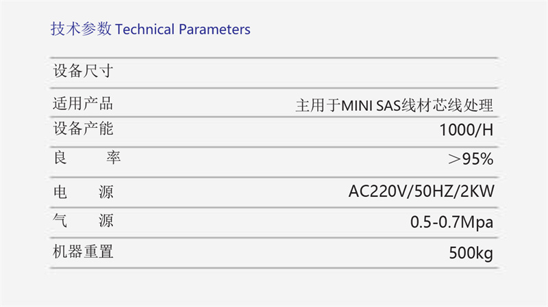產品描述:主用于MINI SAS線材芯線處理